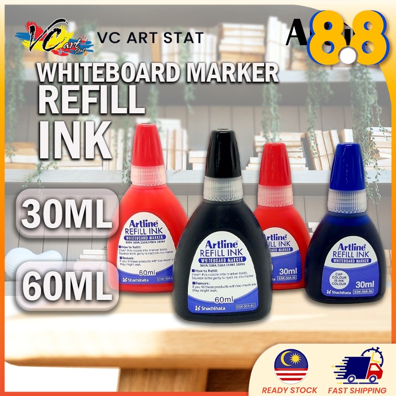 Artline Whiteboard Marker Pen Refill 20ml/50mI/60ml Artline Refillable Whiteboard Markers Lines are clearly visible from a. with its extra big chisel nib (10mm) you can be sure that writing with this artline 5109 marker will be clearly visible on whiteboards from a distance. high performance with dense bold colour and easily erasable. Xylene free ink safe for the human body and less odour. artline 5109a big nib. Artline Refillable Whiteboard Markers.